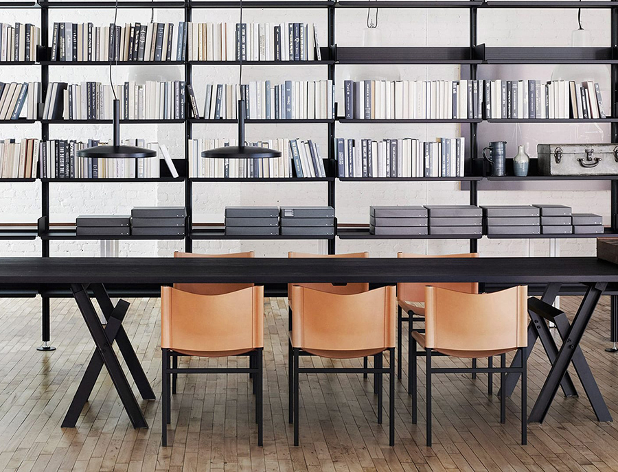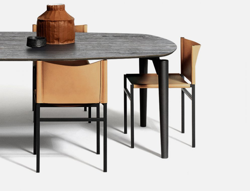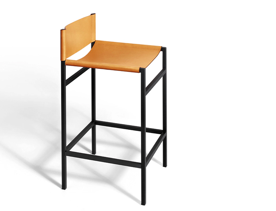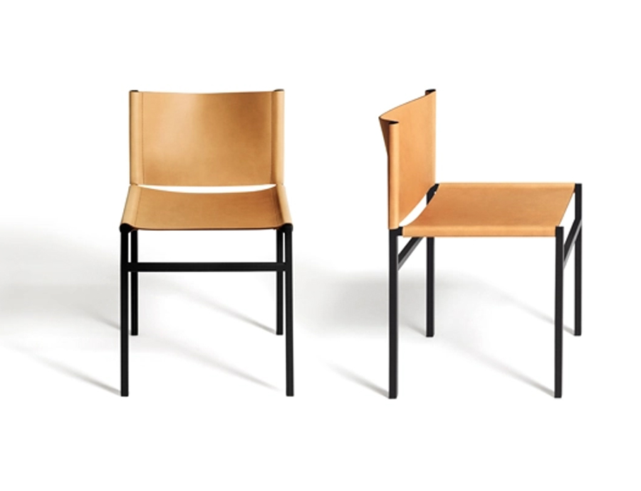 Modern chair with leather seat and backrest, steel frame and eclectic appeal.